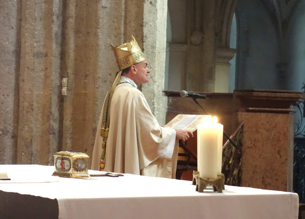 Beim Festgottesdienst zum Erentrudisfest am 30. Juni ermunterte Bischof Dr. Ivo Muser (Diözese Bozen-Brixen) in seiner Predigt mit Blick auf unsere Gründeräbtissin zur Dankbarkeit für das Geschenk des Glaubens, das zugleich die Verpflichtung zur Weitergabe in sich birgt. Bezugnehmend auf das Gleichnis vom Weinstock (Joh 15, 1-8) betonte Bischof Ivo, dass die Rebe nur in Verbindung mit dem Weinstock wachsen und reifen könne, dass dies jedoch eine Abhängigkeit mit sich bringe, die nicht nach dem Geschmack unserer Zeit sei. „Man möchte frei sein, unabhängig, an niemanden ‚gebunden‘, von niemandem abhängig. … Aber so eine autonome selbstbezogene Ungebundenheit kann leicht auch zur Überforderung werden. Wenn ich in allem nur auf mich selbst angewiesen bin, kann ich schnell ‚verdorren‘. Wenn es nichts gibt, was mir Halt gibt und nichts, was mich ‚versorgt‘ mit Lebenskraft, dann bin ich schnell ‚saftlos‘, leer, unerfüllt, und bleibe so ‚unfruchtbar‘.“ In seiner mehrmaligen Aufforderung „Bleibt in mir“ klinge Jesu Sorge um den Menschen durch: „Bleibt in mir, damit ihr nicht verdorrt“, doch er verbinde diese Sorge mit der hoffnungspendenden Zusage „Bleibt in mir und ich bleibe in euch“. „Auch wenn von meiner Seite aus ‚der Faden reißt‘, die Treue schwindet. „Ich bleibe in euch“: Christus hält uns die Treue, er hat Geduld mit uns.“ In ihm bleiben heiße, an Jesus und seiner Botschaft dranzubleiben und seine Vision von einem guten Leben in mir wachzuhalten. Abschließend ermunterte Bischof Ivo unsere Gemeinschaft: „Haltet für uns alle, für alle glaubenden, fragenden, zweifelnden und ringenden Menschen, die diesen Ort betreten, die Frage lebendig, die ich für die wichtigste Frage der Kirche heute halte: Die Frage nach Gott – und damit die Frage nach dem Grund, der uns trägt, sogar über diese Welt hinaus.“