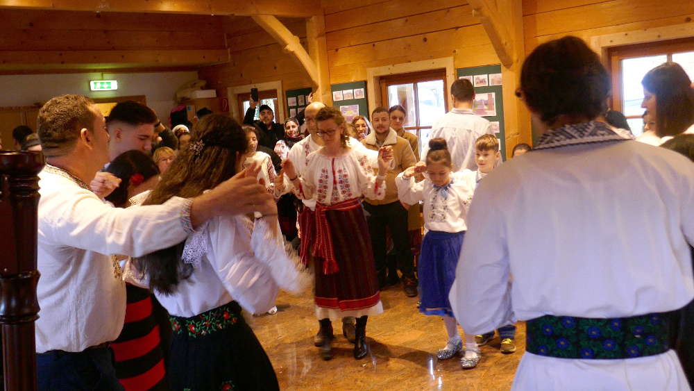 Im Pfarrsaal schloss sich wie in den Jahren zuvor das von Gemeindemitgliedern mit Freude und Liebe vorbereitete Festmahl an – wie immer in bunter Fülle mit diversen rumänischen Köstlichkeiten. Das Miteinander bei Gesang, Musik und Tanz von Groß und Klein, belebt durch die farbenfrohen rumänischen Trachten, war auch in diesem Jahr für alle Mitfeiernden wieder ein besonderes Erlebnis.